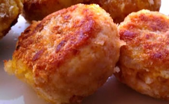 Mix thoroughly with your fingers to avoid breaking up the fish flakes to much. Divide into tennis ball sizes, flatten and refrigerate for an hour or so to firm up. |