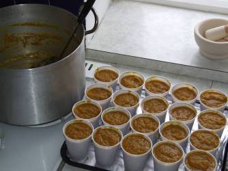 Allow to cool for an hour or two then ladle into about 20 disposable plastic cups, cool completely then store in the freezer.
